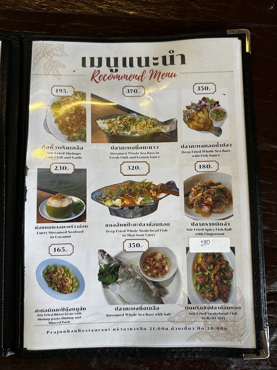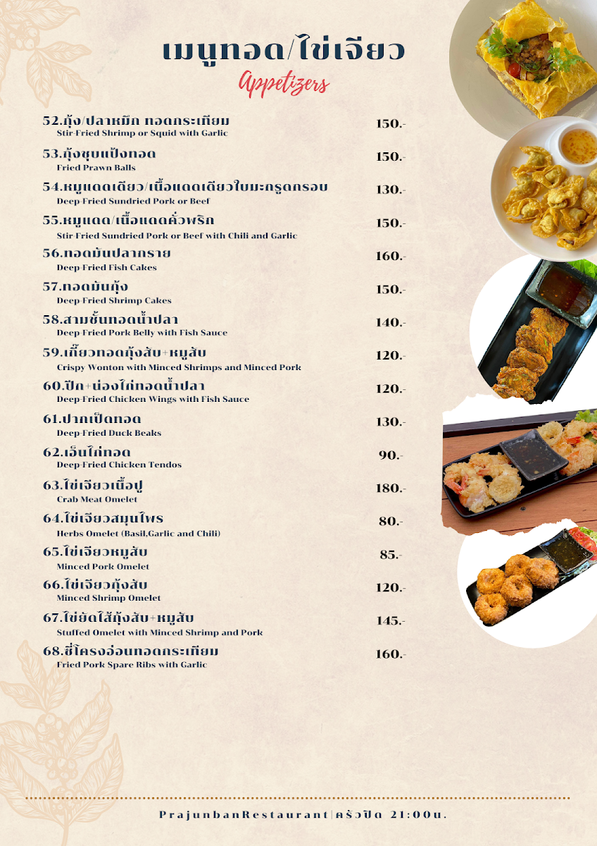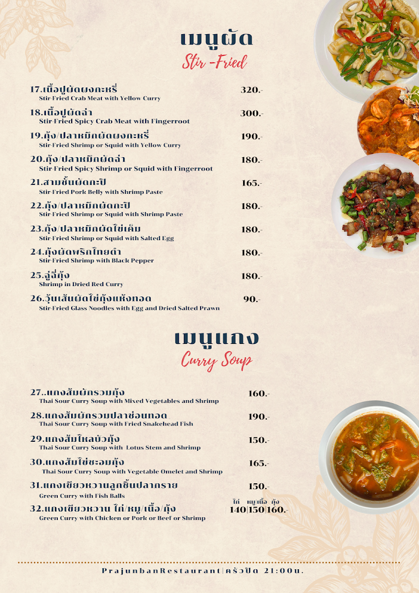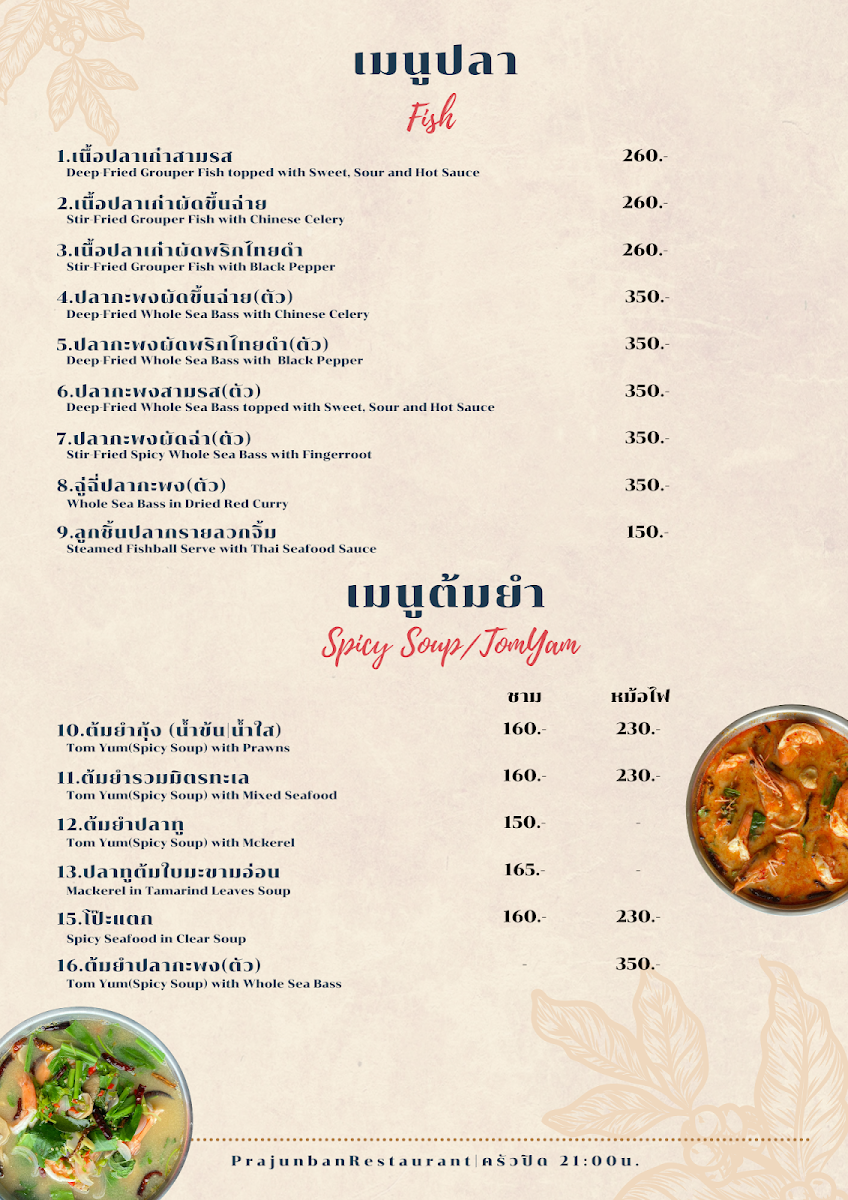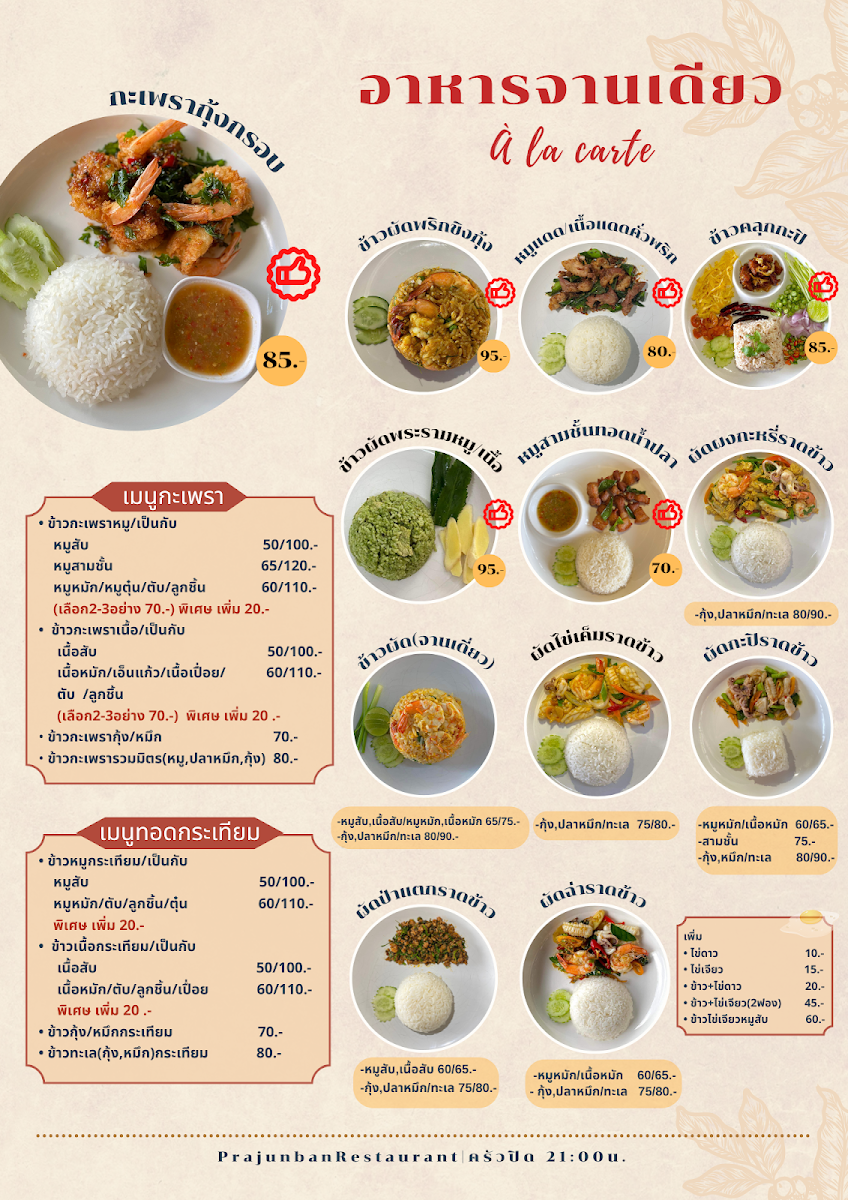 ประจัญบาน(หยาง4) Prajunban Restaurant Menu